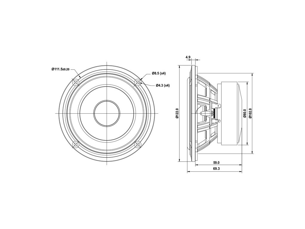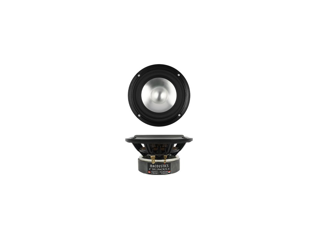 SB Acoustics SB12PACR25-4 je 4" stredobasový reproduktor s hliníkovou membránou, navrhnutý pre presnú reprodukciu stredného pásma v Hi-Fi aj viacpásmových reprosústavách.