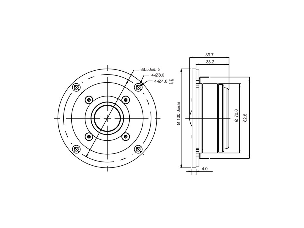 Robustná 100 mm čelná doska z liateho hliníka zvyšuje mechanickú stabilitu meniča a zároveň prispieva k elegantnému vzhľadu. Medený prstenec v magnetickom systéme znižuje indukčnosť kmitacej cievky a minimalizuje fázové skreslenie, čo zlepšuje detail a presnosť reprodukcie.