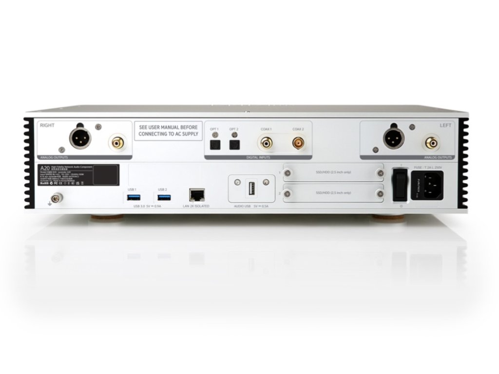 Aurender A20 ponúka všetky potrebné pripojenia pre moderné Hi-Fi systémy: